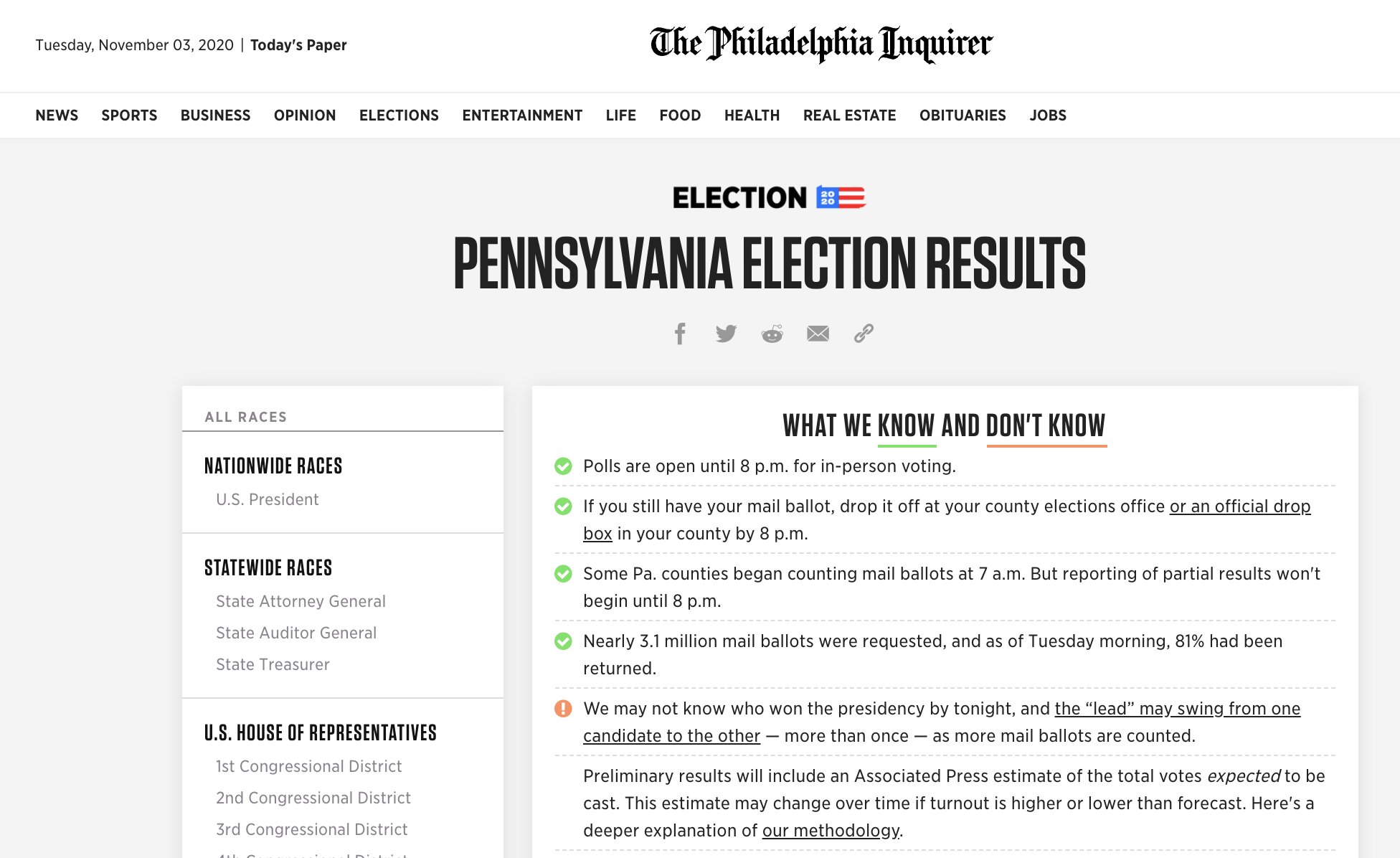 The Philadelphia Inquirer On Twitter What Will We Know And When This Electionday Results Will Start Trickling In After 8 P M But We May Not Know Who Won The Presidency For Days